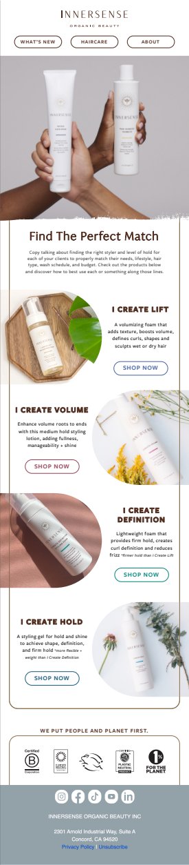 Email design is one of the most critical interactions a brand can have with its audience. My email design ethos blends high impact visuals with an elevated brand authority. I also love incorporating education into the email flow, as a strong and proven way to build consumer trust and loyalty.